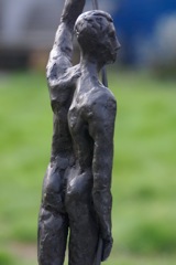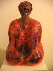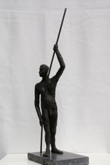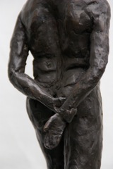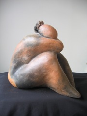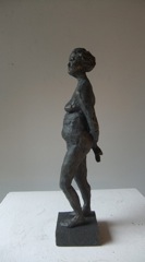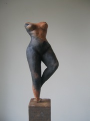 Die twee combinerend is het voor mij een uitdaging om uit een vormeloze klomp klei “iets van een mens” te creëren wat zeggingskracht heeft. Altijd op zoek naar “iets”, maar wat dat “iets” is valt van te voren niet te zeggen, pas achteraf zie ik of ik tevreden ben of niet.